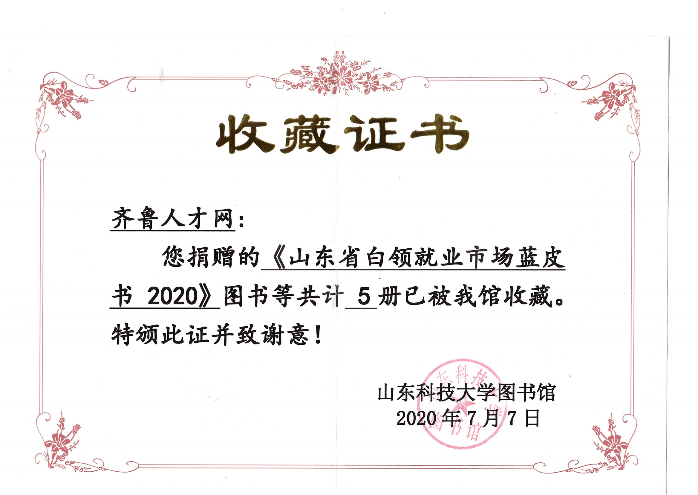 山东科技大学收藏证书